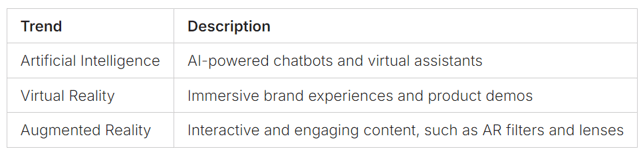 Virtual reality: VR can make brand experiences more real, like virtual product demos and 360-degree videos.
